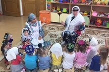 Җиденче кечкенәләр төременә йөрүче балалар янына кунакка дәү әни килде. Тәрбияче Мөхәмәдьярова З.Ф. балаларга өлкәннәрне хөрмәт итү, ярдәм итү турында әңгәмә үткәрде. Әңгәмәгә очрашуыбызның өлкән кешесе кушылды. Ул балаларга элекке заман кул эшләре турында сөйләде. Әлеге очрашу җылы һәм күңелле булды.