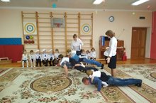 В эти февральские дни в нашем детском саду проводятся утренники ко Дню защитника Отечества. Сегодня честь поздравить своих пап, дедушек и братьев выпала подготовительной группе № 2. Праздник начали с ознакомления детей с Российской армией. Пополнили знания детей о роде войск, военной технике, службе людей военных профессий, их подвигах в годы войны. Вместе с папами ребята участвовали в спортивно-развлекательных конкурсах, решали ребусы, отгадывали загадки. Праздник украсили стихи, песни и танцы в исполнении детей.