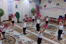 Для проведения утренней гимнастики в своей группе мы используем нетрадиционные формы физкультурно-оздоровительной работы. Утренняя гимнастика в форме танцевальных упражнений облегчает процесс запоминания и освоения движений, повышает эмоциональный фон, способствует развитию мышления, воображения и творческих способностей ребенка. Музыка одновременно регулирует темп и ритм движений, тем самым, способствуя более четкому и правильному выполнению упражнения.
