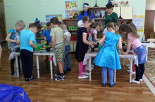 Итоговое занятие по математике на тему «Город сказок» прошло в старшей группе №10. Дети закрепили счет от 1 до 10, обратный счёт, показали свои знания цифр, умения соотносить количество предметов с числом, упражнялись в решении задач на уменьшение числа на единицу, закрепили знания о геометрических фигурах, умение конструировать. Для этого они отправились в путешествие, где их ждали волшебные превращения, приключения и трудные задания. Они добирались по кочкам до болота, узнали, что за необычная лягушка живёт в этом озере, выполнили все задания Кощея Бессмертного: Сколько кувшинок? Сколько кувшинок с цветками? Сколько без цветков? Каких кувшинок больше: с цветками или без цветков? На сколько больше? Что нужно сделать, чтобы и тех , и других кувшинок стало поровну? Сколько комаров летает над болотом? Сколько головастиков плавает? В кого превращаются головастики? Как называется лес, если много берез ,дубов, елей, сосен, разных деревьев? Играли в игру: «Чудесный мешочек»,на ощупь определяли геометрические тела.