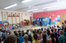 В нашем детском саду выступили артисты театра юного зрителя им. Г. Кариева .Они для детей поставили спектакль «Супер-светофор» ( по пьесе татарского драматурга Амануллы).Режиссер-постановщик спектакля- Заслуженный артист Татарстана Ильфат Камалиев. Дети увлеченно следили за сюжетом, вместе с героями Аленой , Айдаром , со Светофором-Светофоровичем спасали маленькую собачку. Главные герои не забывали ребятам рассказывать о знаках и правилах поведения на дороге, улице.