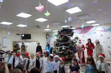 Кто является главным героем новогодних торжеств? Конечно же , Дед Мороз! Вот только он веселился с воспитанниками 14 группы и нечаянно уснул под елкой. Что же делать? И только задорные бубны детишек смогли его разбудить. Пришедшие в гости Зайчик и Лисичка вместе со Снегурочкой и детьми играли и пели, танцевали и рассказывали стишки, за что Дед Мороз со своей внучкой вручил каждому малышу сладкий подарок.