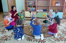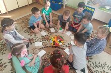 Балаларыбыз уеннарда татар телен актив кулланалар. Режим вакытларында педагоглар балалар белән татар теле буенча лексик материалны кабатлыйлар, бәйләнешле сөйләм телләрен формалаштыралар, сүзлек запасларын баеталар.
