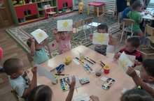 Җәй - иң күңелле, бик рәхәт ел фасылы. Безнең бүгенге көнлек эшчәнлек темасы да " Эссе җәй " дип атала. Бүген көн яңырлы булса да балаларның җәйге эссе көннәр турында кызыксынулары, белемнәре күп. Алар бүген группаларда җәйге көннәр турында рәсемнәр ясадылар, әвәләделәр,бик теләп кисеп ябыштыру аша җәй түрында белемнәрен ныгыттылар. Эсе көннәрне ничек уздырулары турында бик матур әңгәмәләр кордылар.