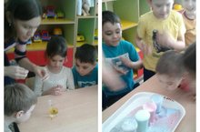 Сегодня воспитанники подготовительной группы провели эксперимент. Они узнали как сделать вулкан из цветной пены.
