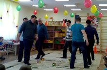 В нашем детском саду продолжаются развлекательные игры, приуроченные ко Дню защитников Отечества. Папы приготовились к празднику заранее: одели спортивную одежду, приготовили плакаты со своими фотографиями и отпросились с работы (ведь это тоже очень важно).