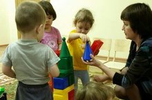Задачи: учить играть в группе детей, путем формирования навыков общения и взаимодействия; учить построению домика с помощью кубиков; развивать мелкую моторику и общую; развивать мышлени