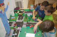 Дети проживают в городе, где очень интенсивное движение транспорта. Незнания элементарных правил дорожного движения приводит к дорожно-транспортным происшествиям, где дети являются часто пострадавшими и причиной этой беды. В средней группе мы провели беседу для ознакомления с правилами дорожного движения и правилами поведения на улице . Работа была разнообразна. С детьми рассматривали макет " дороги города" ,читали книжки о светофоре и его сигналах, о дорожных знаках, машинах. -