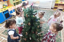 Бүген - кышның беренче көне. Димәк, тиздән Яңа ел җитә. Кече яшьтәге икенче төркем балалары белән рәсем шөгылендә чыршы белән таныштык. Балаларга яңа ел символы чыршы икәнен аңлатып аны пумала белән яшел төскә буядык. Пумала белән дөрес эш итүне дәвам иттек.
