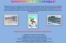 РОДИТЕЛИ! Не допускайте детей к реке без надзора взрослых; предупредите их об опасности нахождения на льду при вскрытии реки или озера. Расскажите детям о правилах поведения в период паводка, запрещайте им шалить у воды. Оторванная льдина, холодная вода, быстрое течение грозят гибелью. Помните, что в период паводка, даже при незначительном ледоходе, несчастные случаи чаще всего происходят с детьми. Разъясните детям меры предосторожности в период ледохода и весеннего паводка.