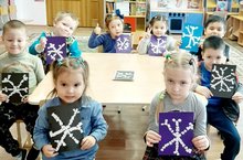 Тема: "Матур кар бөртекләре". Бүген беренче номерлы өлкәннәр төркеме балалары матур кар бөртекләрен кәгазьне ваклап турап кисеп - ябыштыру ысулы белән ясадылар.Балаларга үзләре ясаган кар бөртекләре бик ошады. Бу ысул белән балалар өйдә әти- әниләрен дә ясарга өйрәтергә булдылар.