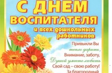 Уважаемые воспитатели, дошкольные работники, ветераны дошкольного образования! От имени коллектива нашего детского сада примите самые искренние поздравления с нашим профессиональным праздником – Днем воспитателя и дошкольных работников!