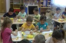 Мәктәпкә әзерлек төркемендә "Көзге пейзаж" дигән темада рәсем шөгыле узды. Балалар көзге агачларны ясарга, төсләрне дөрес бирү техникасын аңлап эшләргә өйрәнделәр.