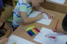 Мәктәпкә әзерлек төркеме балалары рәсем шөгылендә рус халкының ир- ат һәм хатын- кыз костюмнары белән таныштылар.Балаларда рус халык милләтенә карата хөрмәт , игътибар тәрбияләнде, милли төсмерләрне аера белү күнекмәләре формалаштырылды.
