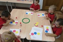 Сегодня во второй младшей группе №2 на занятии аппликация дети познакомились с правилами наклеивания.Тема : " Мячики катятся по дорожке". Задачи:- учить выкладывать на фон готовые фигуры и наклеивать их, нанося клей на бумагу не с цветной , а с обратной стороны , прижимать деталь плотно к бумаге;- развивать практические умения и навыки , мелкую моторику рук, глазомер; психические процессы;- воспитывать аккуратность в работе , желание помочь другу.