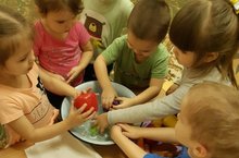 Сегодня во второй младшей группе №2 была проведена дидактическая игра на тему : " Угощаем куклу Машу фруктами и овощами " Цели: формировать представление об овощах и фруктах , как витаминах, полезных для здоровья человека. Закрепить умение детей различать и называть овощи и фрукты. Воспитывать привычку мыть фрукты и овощи перед употреблением их в пищу ; мыть руки перед едой.