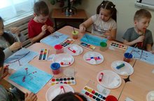 Сегодня в рамках открытых занятий по художественно- эстетическому развитию , в средней группе прошло занятие по рисованию . Тема открытого занятия " Аквариумные рыбки". Цель: формирование у детей интереса к нетрадиционным техника рисования и использование их в изобразительное деятельности ( рисование мятой бумагой, ватными палочками, оттиск печатками из кортофеля. .Дети с удовольствием и увлечением выполняли задания, им было очень интересно.