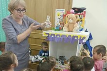 Воспитанники второй младшей группы в открытом занятии по познанию (ФЭМП) отправились на прогулку в зоопарк. Цель занятия: учить сравнивать два предмета по длиннее и обозначать результат сравнения словами "длинный","короткий", "длиннеее-короче".
