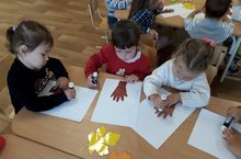 Сегодня воспитанники подготовительной группы №1 на занятии аппликация закрепили умение вырезывать симметричные предметы из бумаги, сложенной вдвое, знания детей о фруктах.Познакомились с понятием «натюрморт».Научились красиво располагать изображение на листе, искать лучший вариант, подбирать изображения по цвету.У детей воспитывался интерес к конструированию из бумаги; научились аккуратности, самостоятельности.