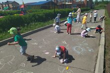 Сегодня с детьми средней группы N2 "Капелька" на прогулке рисовали детские рисунки мелом на асфальте. Дети были очень заинтересованы и довольны своими творениями.