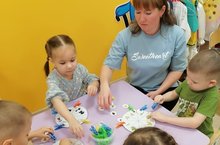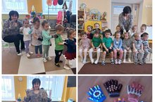 "Массажные рукавички» и «массажные перчатки» используются для игрового массажа, который помогает оказывать позитивное влияние на рост и развитие детского организма, снимает усталость, улучшает циркуляцию крови, успокаивает нервную систему. Игровой массаж положительно влияет на развитие речи, так как дети вместе с педагогом проговаривают стишки.Воспитанники второй группы раннего возраста "Пчёлки"с интересом выполняют упражнения игрового массажа,получают массу положительных эмоций.