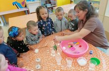 Сегодня с детьми второй группы раннего возраста провели эксперименты с водой. Дети узнали, что вода-это источник жизни на Земле, усвоили элементарные знания о некоторых свойствах воды(жидкая, течёт, прозрачная, у воды нет запаха, вкуса и цвета)Почувствовали,что это значит, быть учёным.