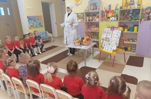 С целью ознакомления детей с витаминами, применения полезной пищи, укрепления здоровья во второй группе раннего возраста "Звездочки" совместно с медсестрой детского сада проведена познавательная беседа" Кто такие витамины". Был организован просмотр видеоролика о витаминах, проведена устная беседа- опрос медсестрой.