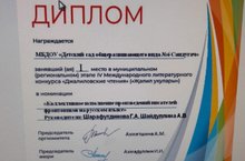 С целью речевого развития и формирования интереса к художественному слову, умения чувствовать красоту и выразительность поэтического слова, продвижение и сохранение, поддержка татарского языка и культуры, популяризации творческого наследия М, Джалиля прошел IV Международный литературный конкурс чтецов "Джалиловские чтения" . Из детского сада участвовали и дети , и воспитатели. Воспитатели стали номинантами в различных номинациях, дети подготовительной группы"Лучики" Сунагатова Роза и Шафикова Адиля заняли 1 место. Руководители: Шарафутдинова Г.А., Шайдуллина А.В.