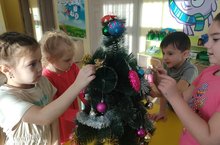 Маленькие представители человечества , в отличии от нас взрослых и немного уставших от повседневных забот, верят в чудеса и трепетно ждут их в предновогодней подготовке.В предверии Нового года во всех группах царит новогоднее настроение, украшена елка, горят гирлянды, сделаны снежинки, повешаны бусы. Воспитанники старшей группы"Радуга" решили самыми первыми начать украшение елочки и по традиции спеть песню в хороводе. Ребята отлично справились с этой удивительно сказочной задачей, передали эстафету другим группам.