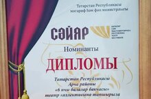 Һәр ел саен үткәрелеп килүче Республикакүләм "Сәйяр" балалар һәм яшүсмерләр театр фестиваленең йомгаклау тантанасы, Казанның Халыклар дуслыгы йортында узды. Әлеге чарада безнең балалар бакчасы Номинант исемен яулап диплом бүләкләнде.