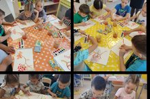С воспитанниками подготовительной группы "Сказка" была освоена техника рисования пальчиками_ прикладывание пальчиками. Продолжили работу над ознакомлением смешивания красок, использование различных красок в работе, закрепили технические навыки. Дети с увлечением выполняли эту работу, радовались конечному результату своей работы.