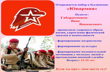 Открывается набор в объединение "Юнармия" (педагог: Габдрахманов Ваис Ваккасович). Если ты крут, твоё место тут!