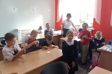 "Бәйләнгән дөнья" берләшмәсендә (җит. Латыйпова Р.Н.) укучылар рәхәтләнеп шөгыльләнәләр. Алар үзләре өчен, дуслары өчен яки өйне бизәү өчен әйберләр бәйләргә иң гади бәйләү техникасын үзләштерәләр.