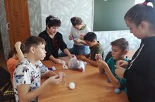 "Бәйләнгән дөнья" берләшмәсендә (җит. Латыйпова Р.Н.) балалар рәхәтләнеп шөгыльләнәләр. Алар үзләре өчен, дуслары өчен яки өйне бизәү өчен иң гади бәйләү техникасын үзләштерәләр.