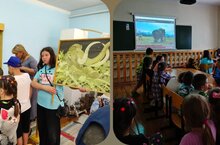 Сегодня 1-й отряд Новокинерского школьного лагеря посетил музей. Им Бакиева А.Т. объяснила что такое этнографический музей, название Кинера, рассказала о происхождении села Новый Кинер, об останках мамонта в музее. Дети составили из букв слово "музей", собрали из кусков рисунок мамонта, просмотрели научное видео о мамонтах, раскрасили рисунок родной деревни и оставили автограф. Экскурсия завершилась исполнением караоке "Мин яратам сине, Татарстан".