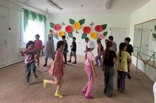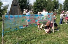 Бүген Хәкимова Л.Ф. һәм Фазылҗанова Л.Н. мәктәп яны лагереның 1 отрядын азык-төлек пленкасында традицион булмаган рәсем ясау техникасының бер төре белән таныштырдылар. Кемдер пленканы буяды, кемдер күкне, кояшны, шарларны ясады. Бу рәсем ясау ысулы һәркемгә бик ошады. Аннары барысы бергә күңелле уеннар уйнадылар.