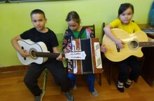 Обучающиеся объединения "Баян" осваивают не только базовые навыки игры на баяне, но и учатся играть на гитаре. Рук. Султанова Г.Р.