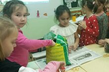 "Туган телем сагында" акциясе уңаеннан "21 нче гасыр осталары" берләшмәсенә йөрүче укучылар милли үрнәкләр кулланып алъяпкыч һәм түбәтәй ясадылар. Җит. Загидуллина Г.В.