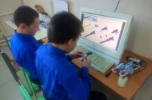 Обучающиеся объединения "Робототехника" Юсупов Салават и Багаветдинов Рузаль за сборкой роботов.