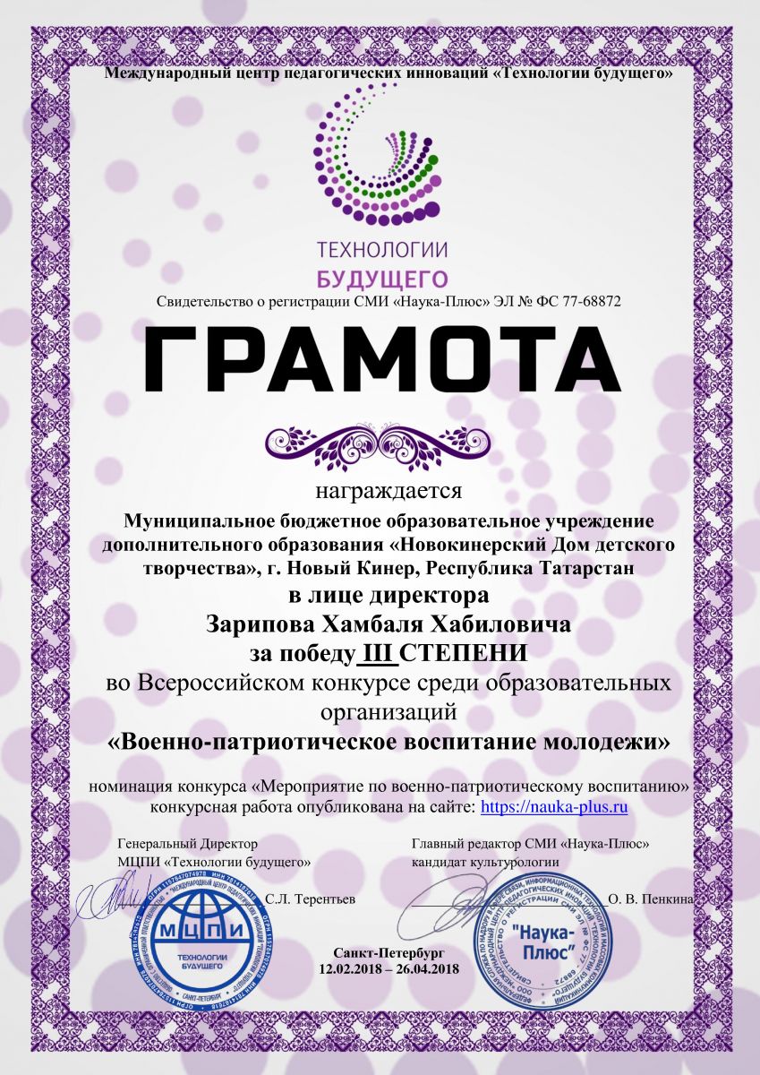 Всероссийский конкурс среди образовательных организаций "Военно-патриотическое воспитание молодежи"