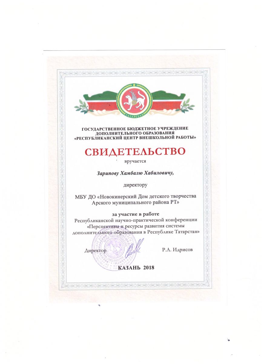 Муниципальное бюджетное учреждение дополнительного образования «Новокинерский Дом детского творчества" Арского муниципального района Республики Татарстан/Татарстан Республикасы Арча районы "Яна Кенәр балалар иҗаты Йорты" өстәмә белем муниципаль бюджет учреждениесе