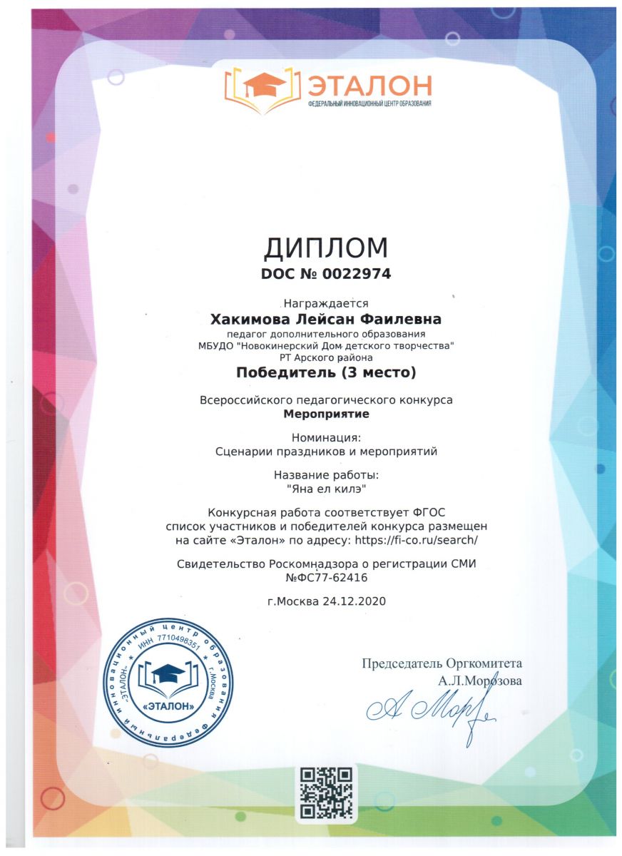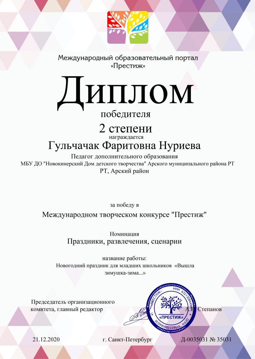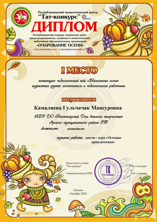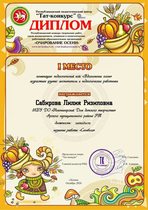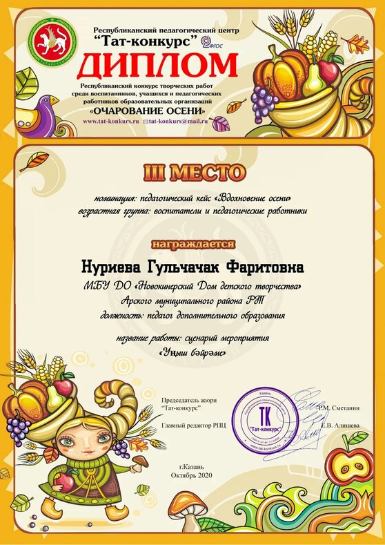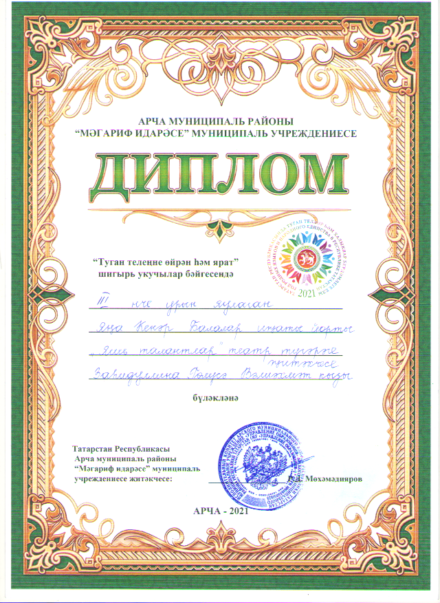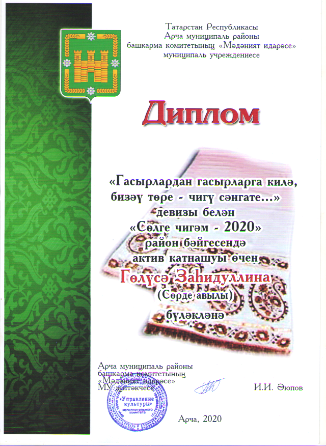 Диплом участника - "Сөлге чигәм-2020"