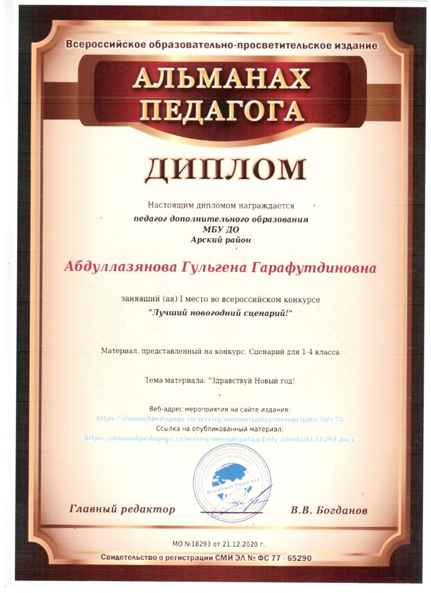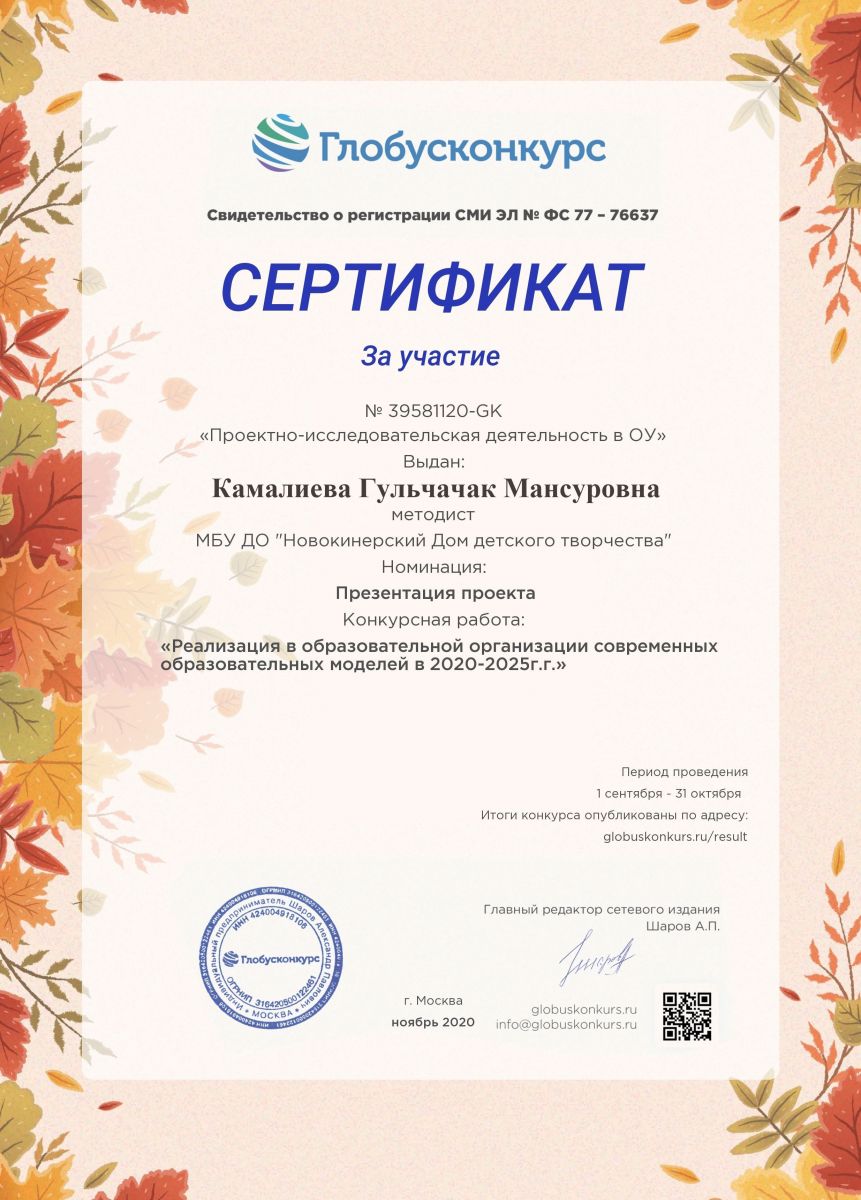 | Руководитель: | Камалиева Гульчачак Мансуровна |