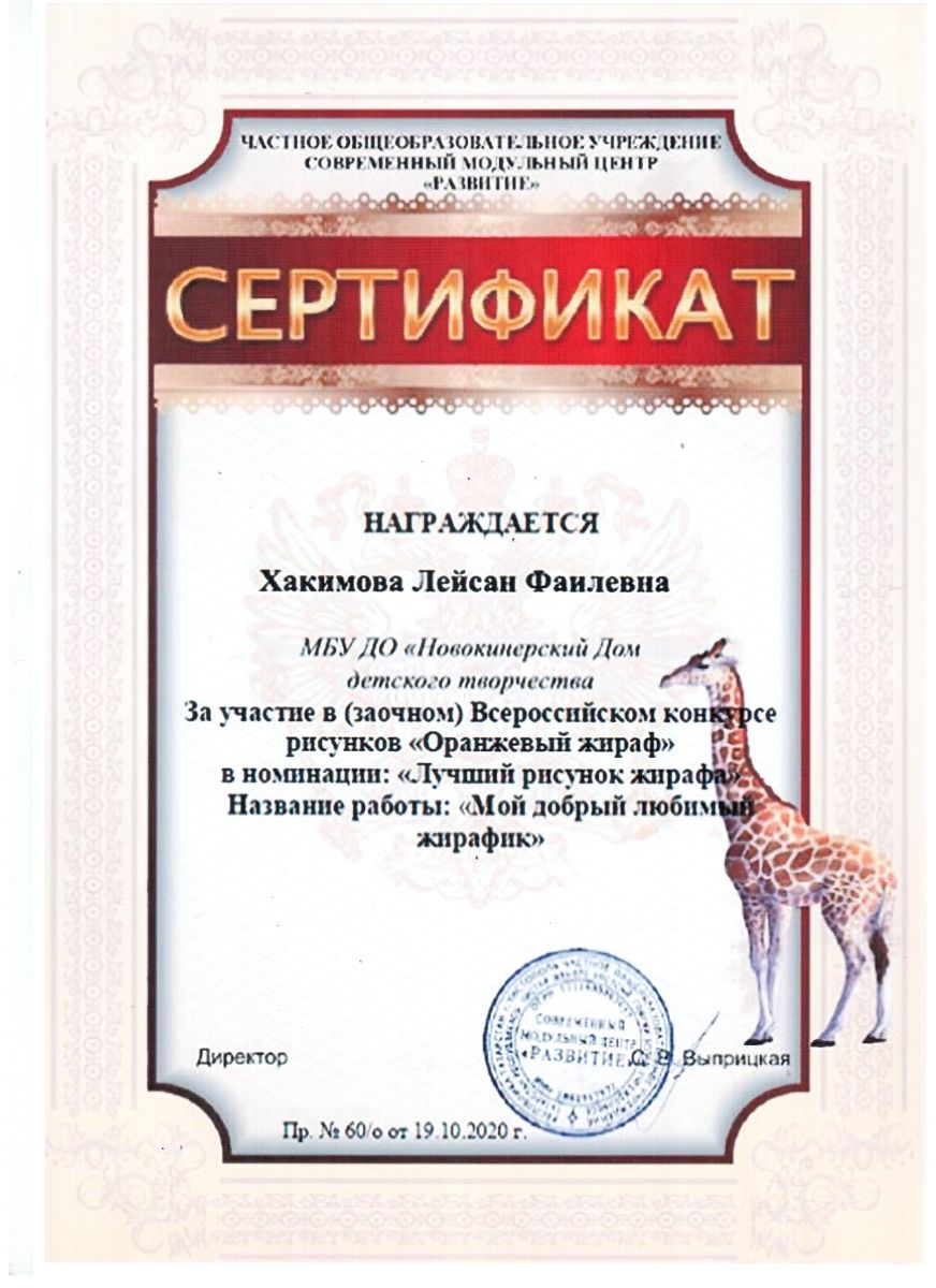 Сертификат участника - "Оранжевый жираф"