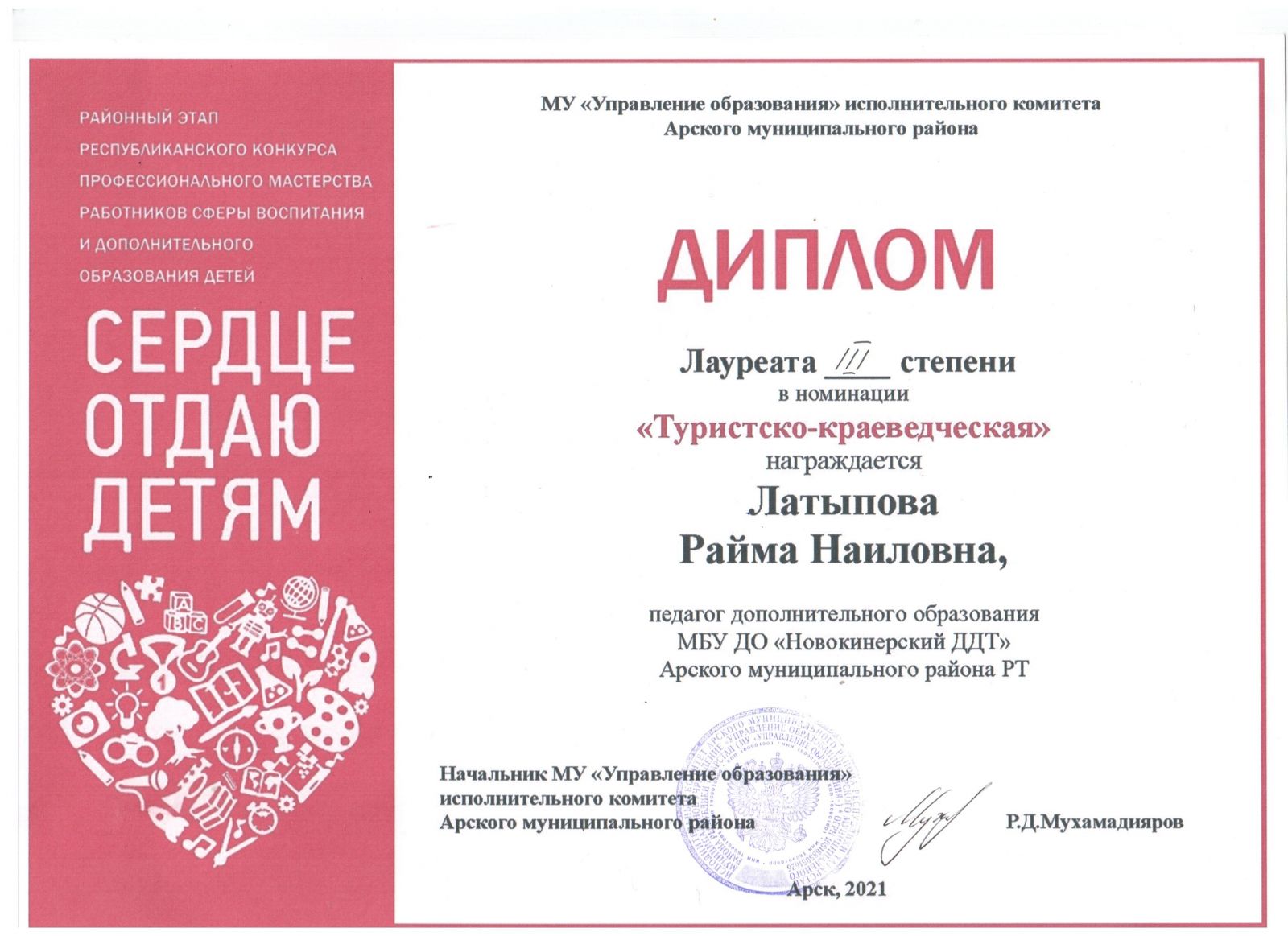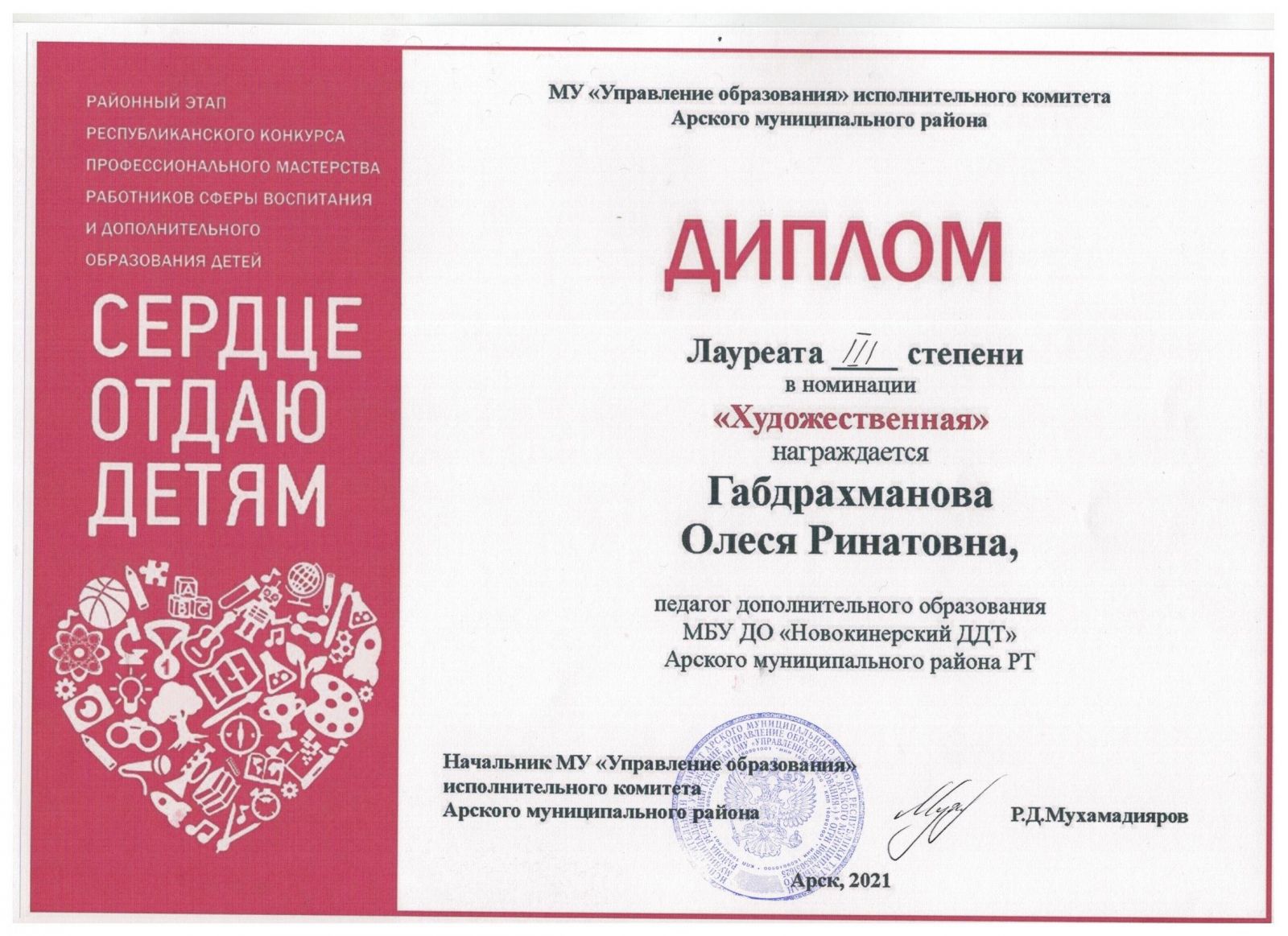 Диплом 3 степени - "Сердце отдаю детям"