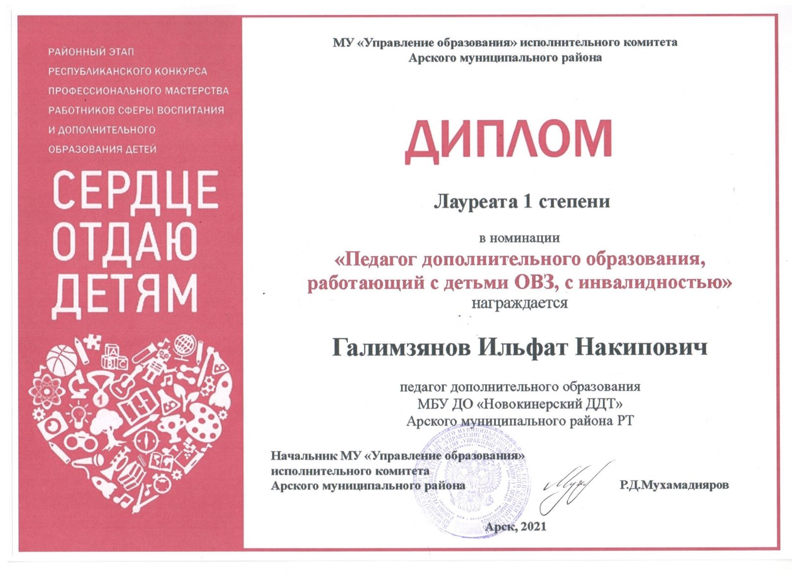 Диплом лауреата I степени - "Сердце отдаю детям"