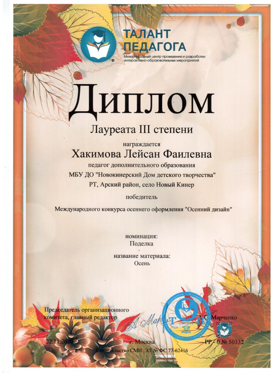 Диплом лауреата 3 степени - "Осенний дизайн"