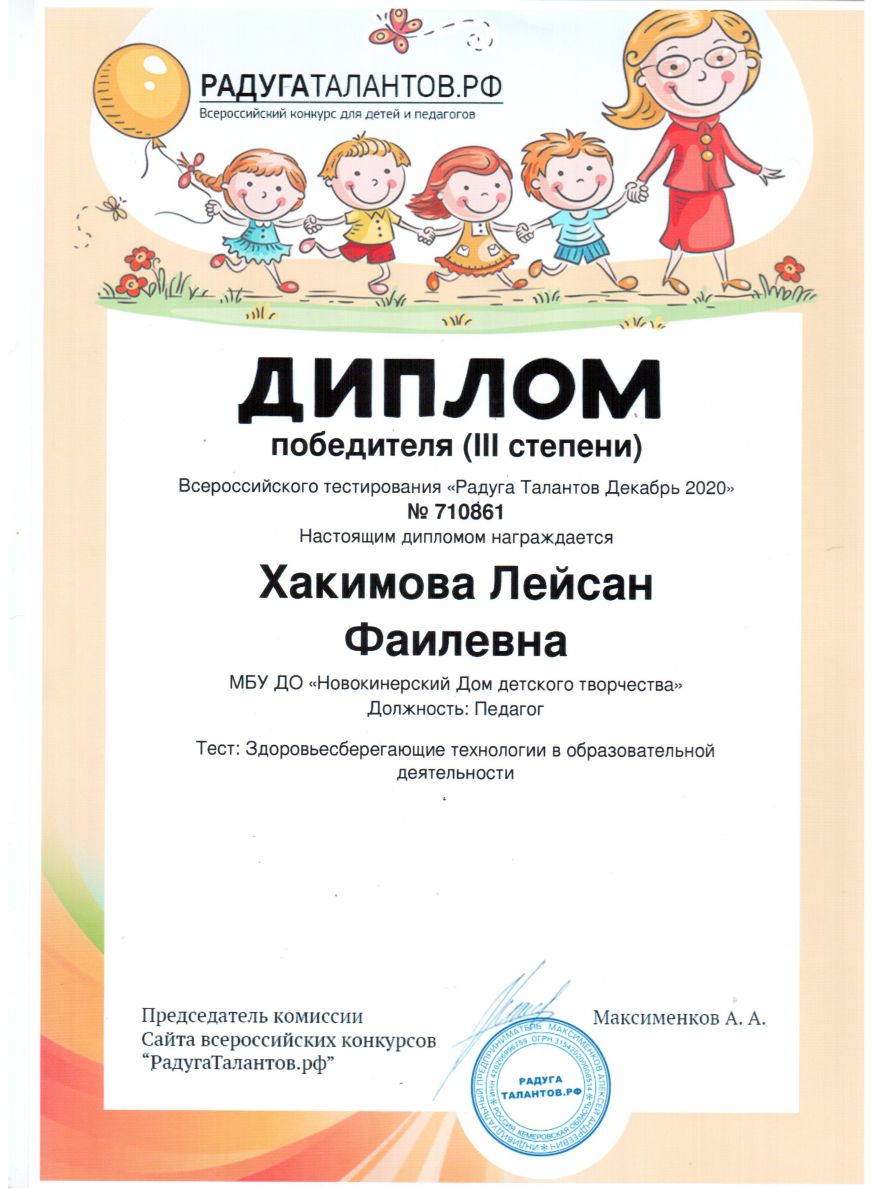 Диплом победителя 3 степени - "Радуга талантов"