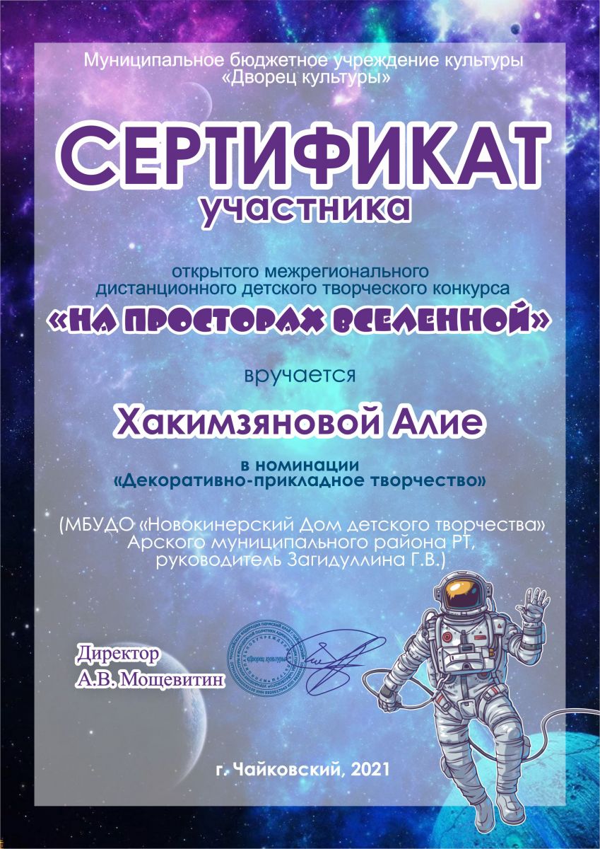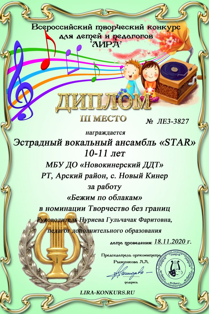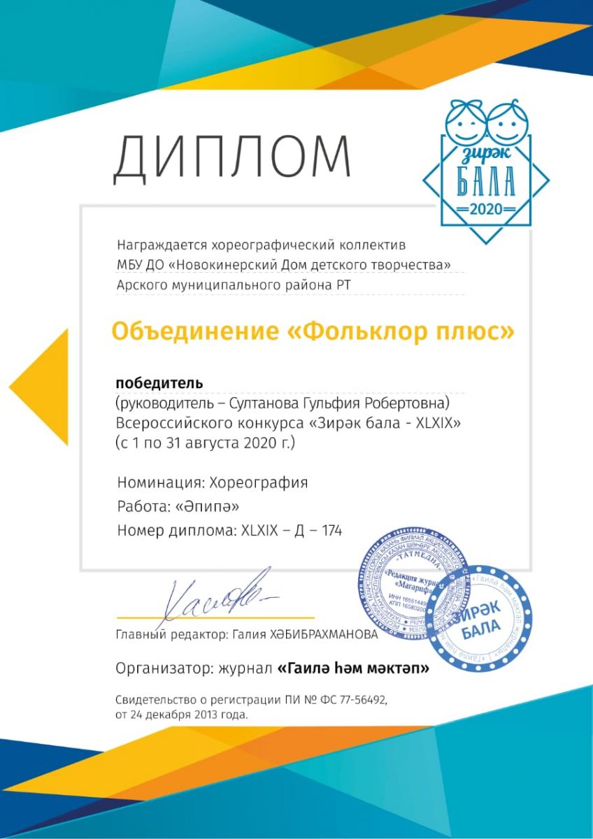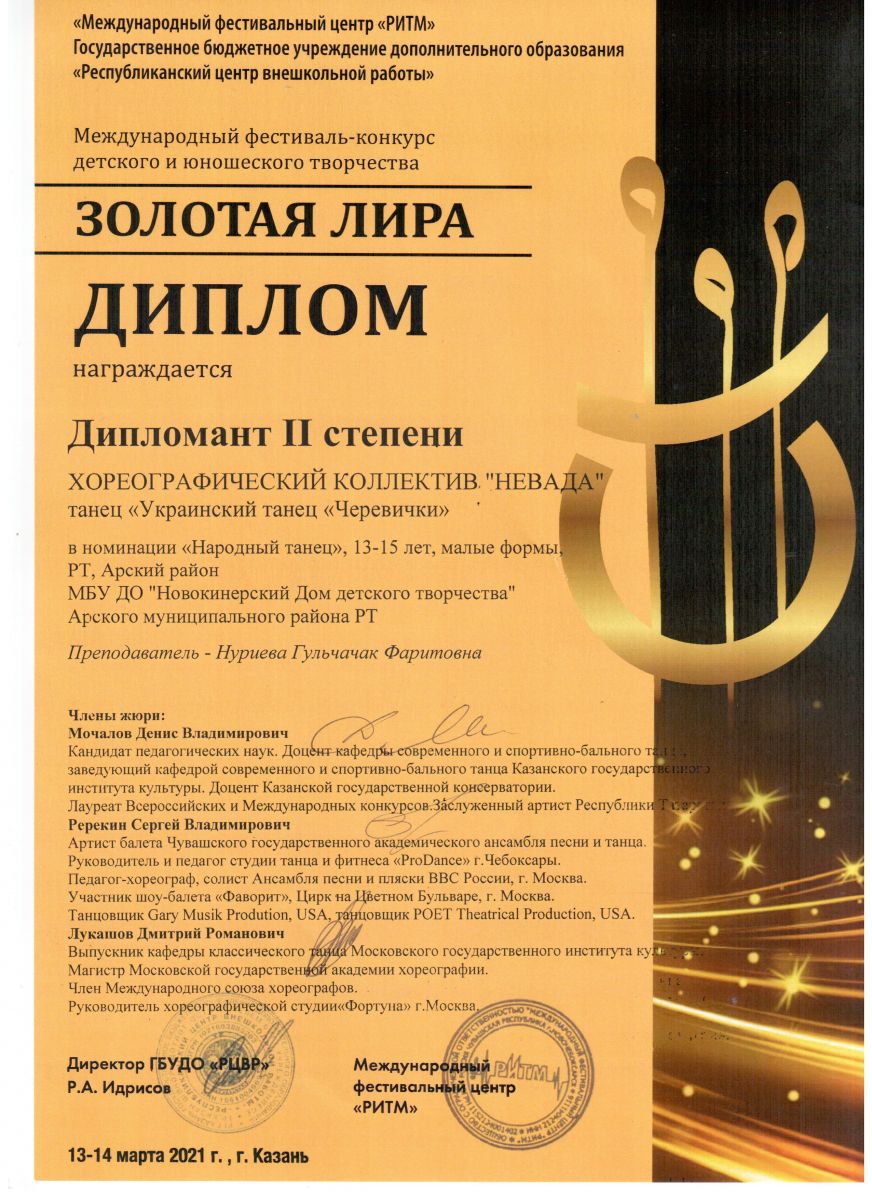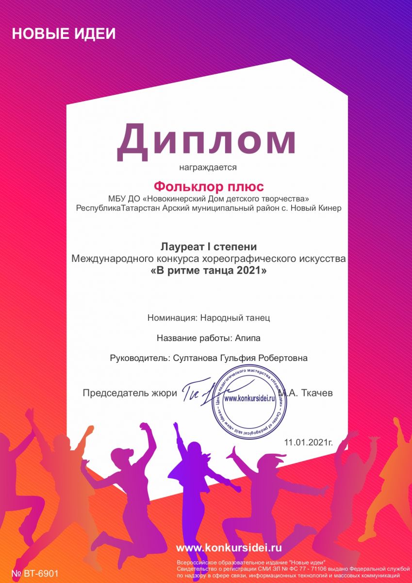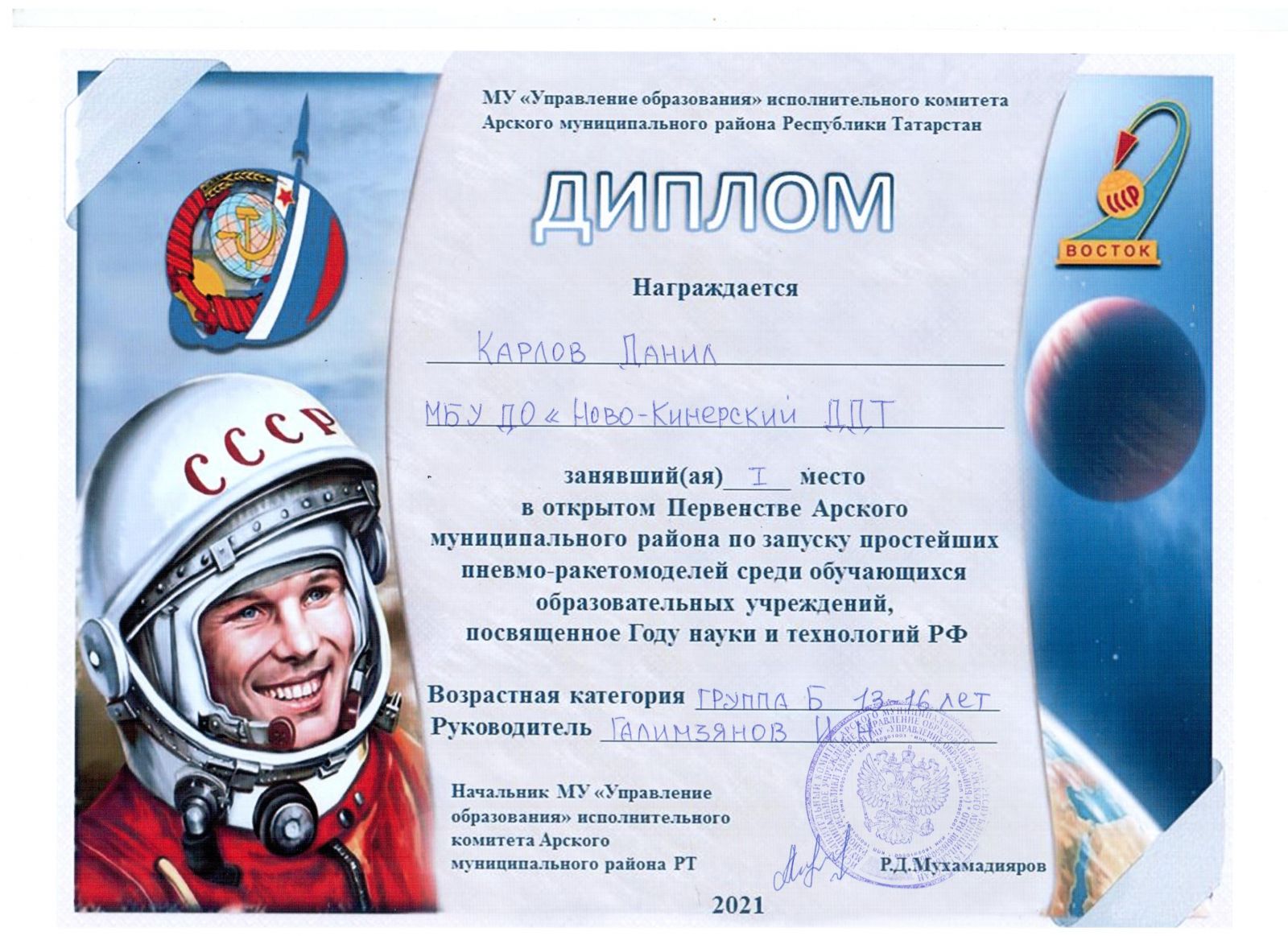 Диплом лауреата районного молодежного конкурса-фестиваля эстрадного искусства "Арча Йолдызлары 2021"