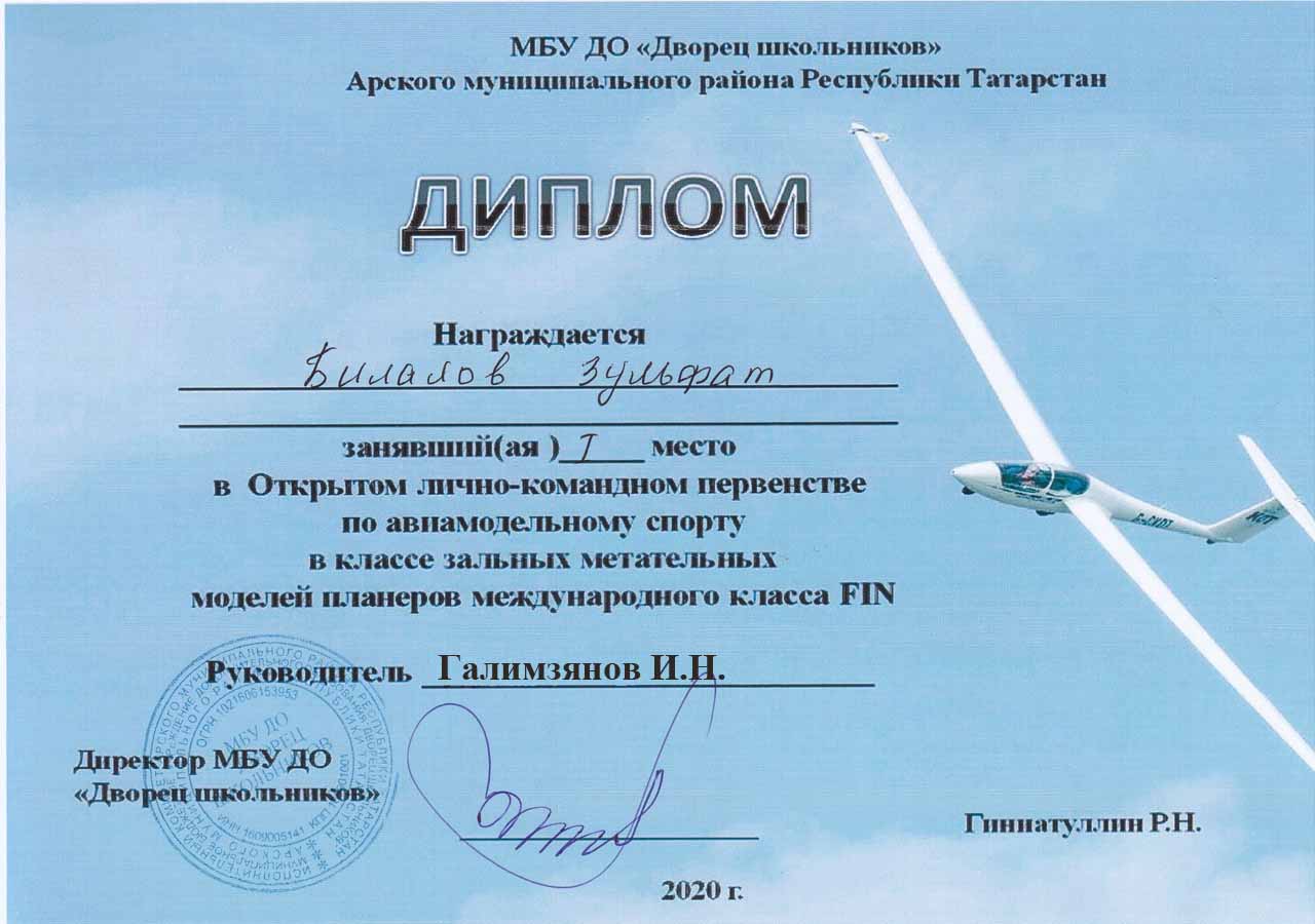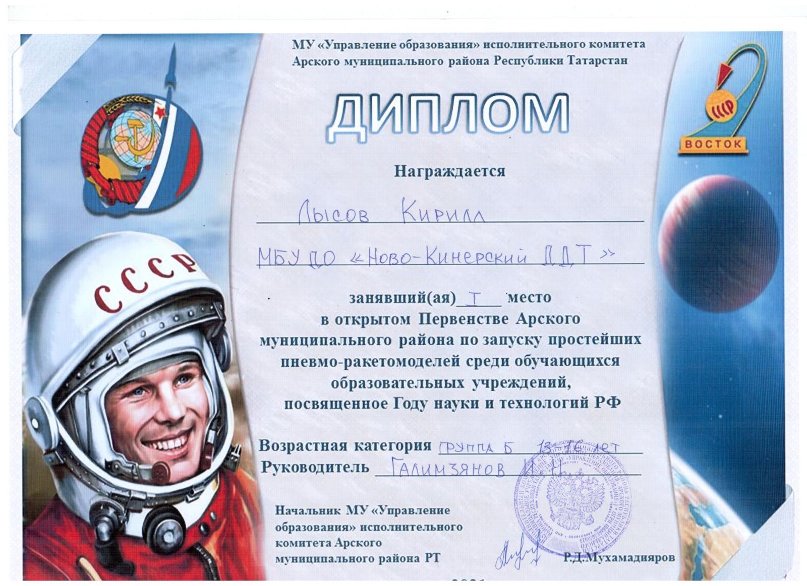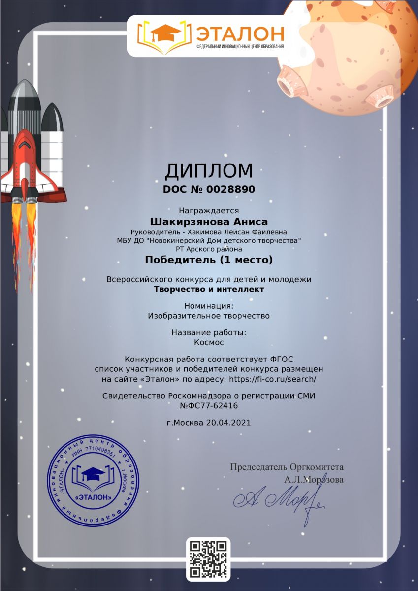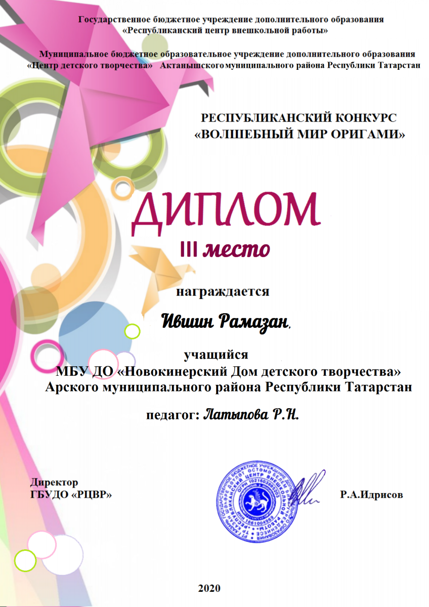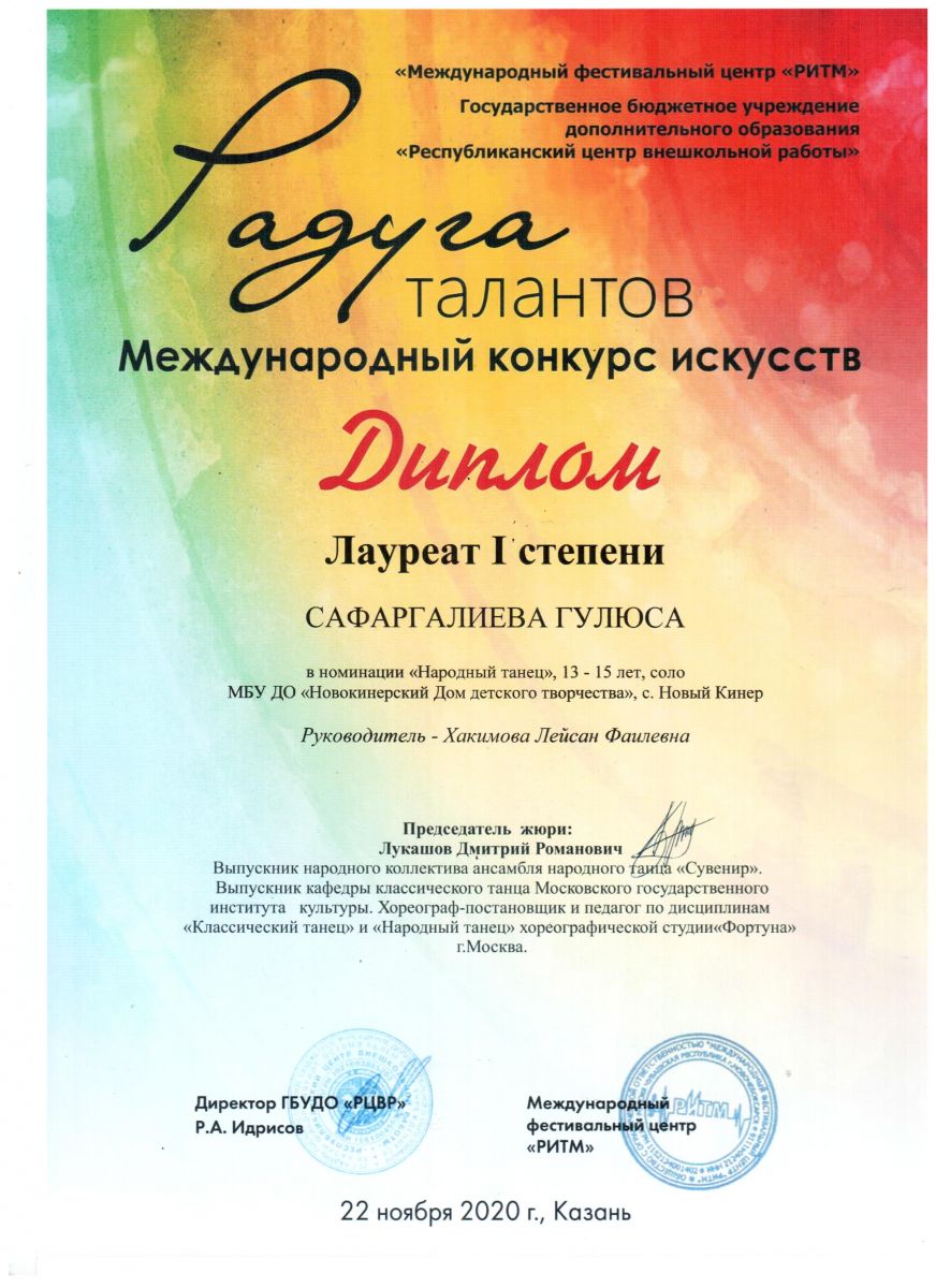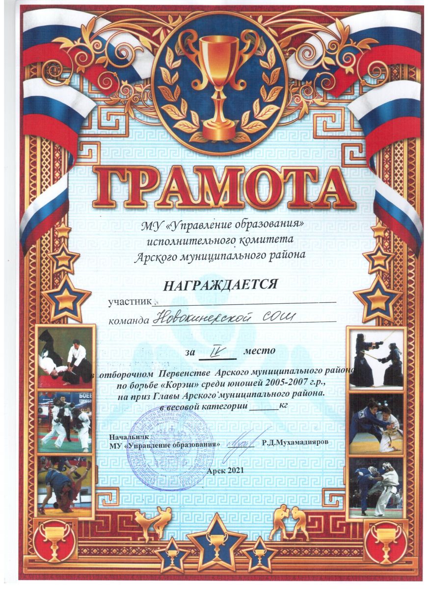 Диплом лауреата районного молодежного конкурса-фестиваля эстрадного искусства "Арча Йолдызлары 2021"